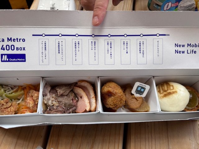 路線図のようにメニューの案内が書かれてます。なかなかおいしかった。箱を外側のデザインも電車です。